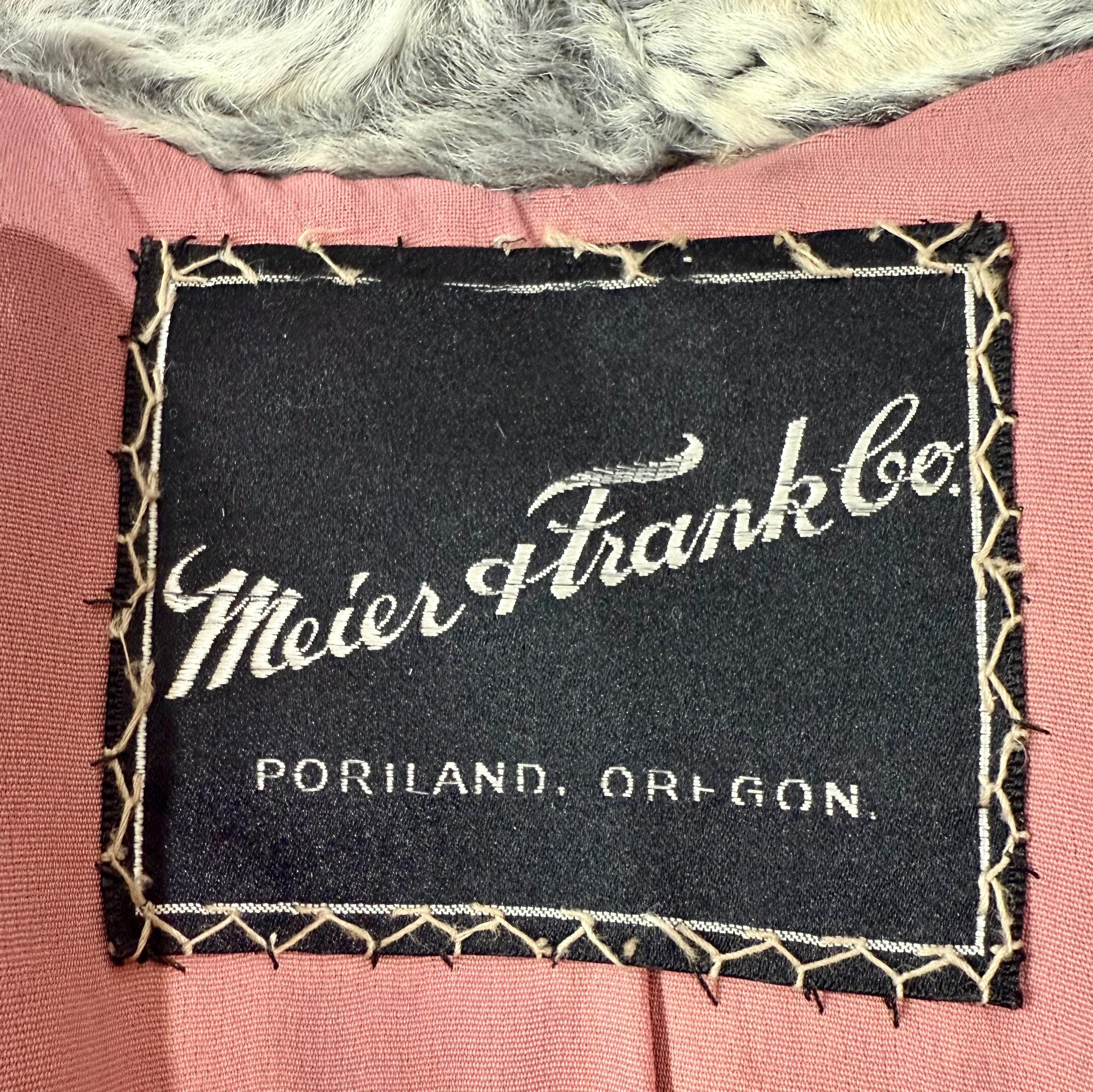 This is an AMAZING coat made from Persian lamb. It is extremely rare to find one in excellent condition but this is one of the few. The label is “Meier & Frank Co” in Portland, Oregon. As seen on the description of the department store in the pics, Meier & Frank opened in the 1870s and later became Macy’s.