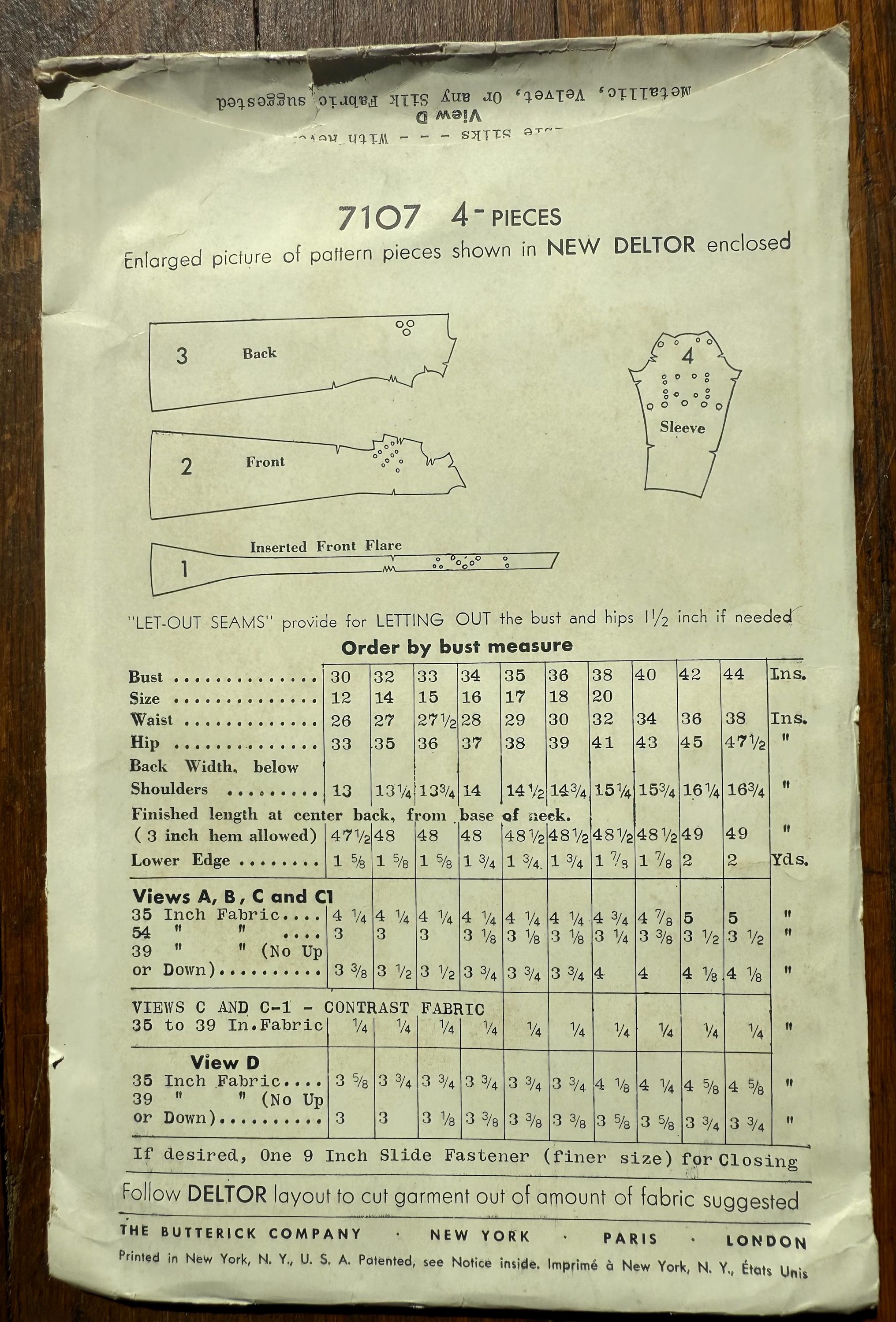 This is a vintage sewing pattern, Butterick 7107, from the 1930s.