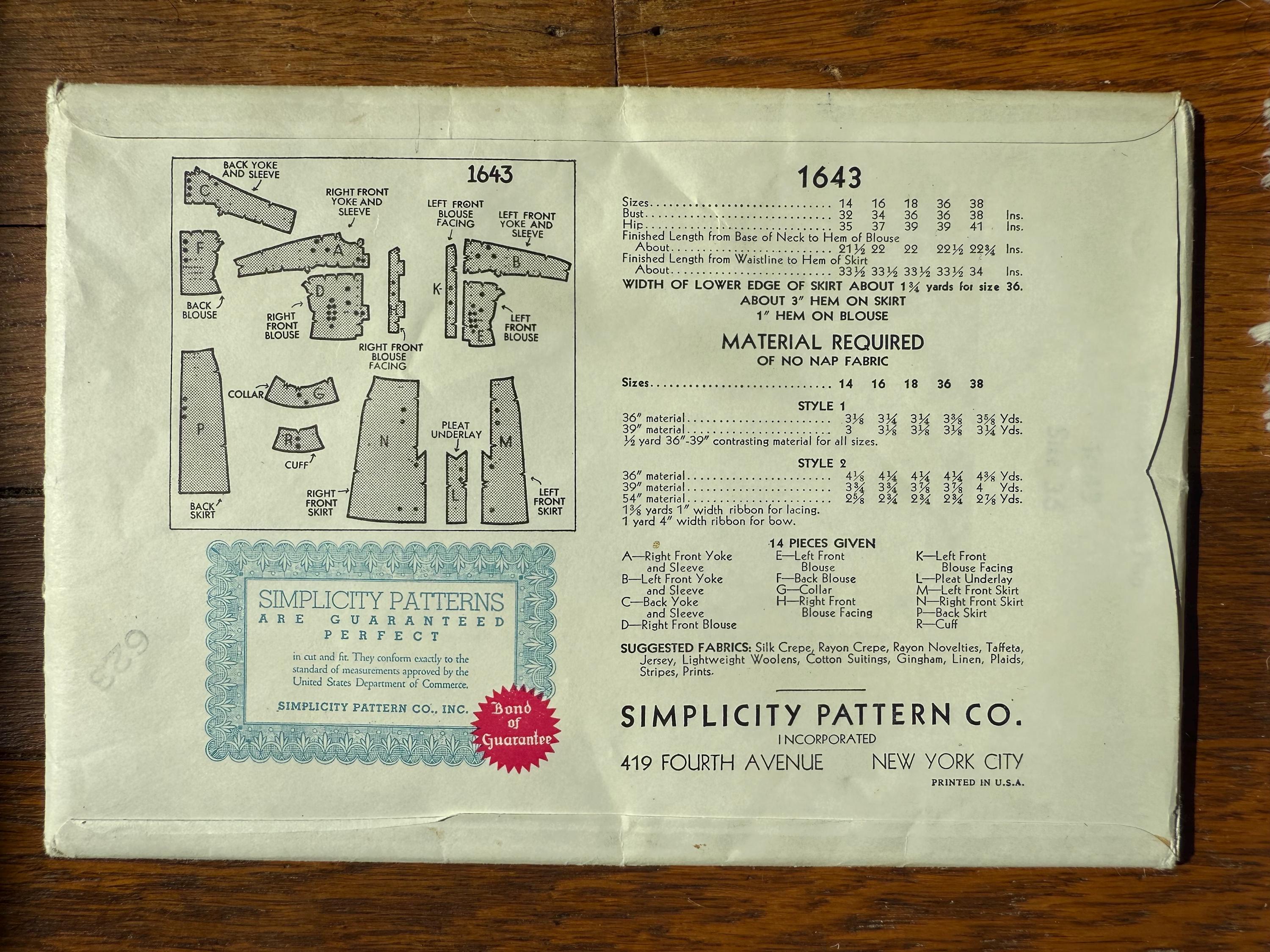 This is a vintage 1930s dress pattern by Simplicity, #1643.