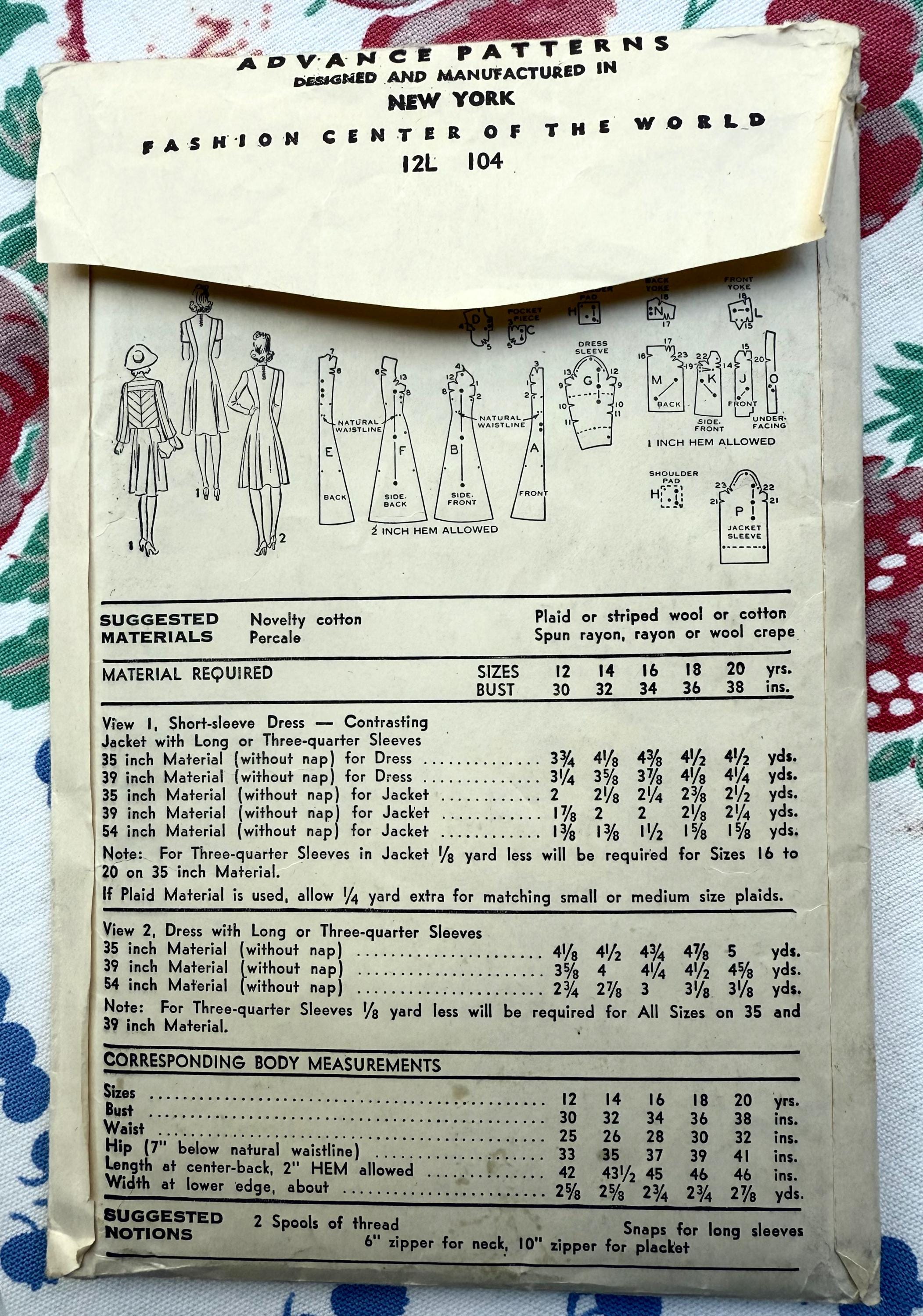 This is a 1940s vintage sewing pattern is Advance Patterns, #2905.