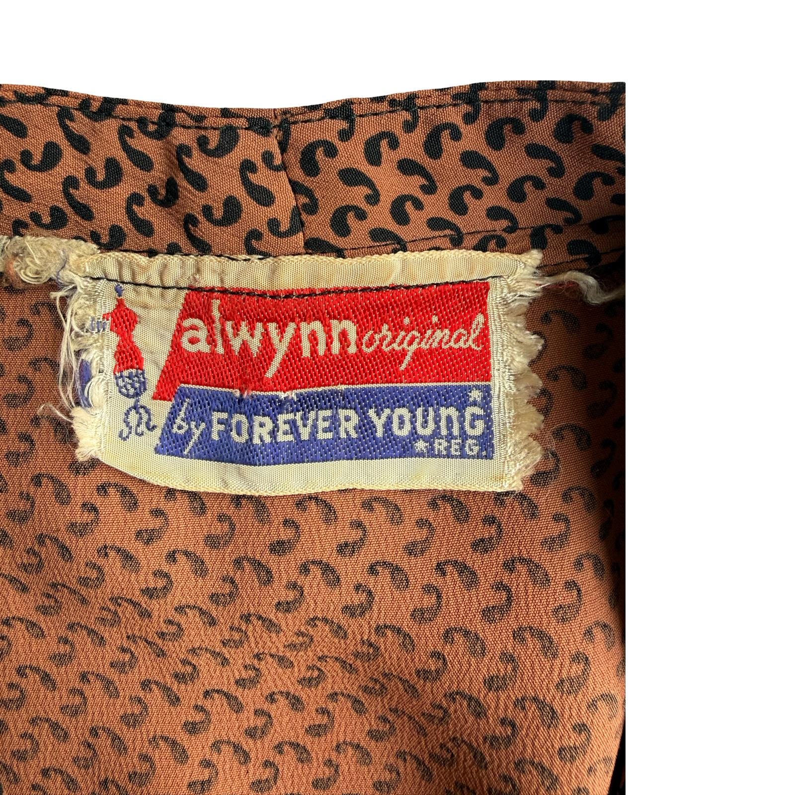 The cold rayon fabric features a small geometric print that looks like half a curled shape.